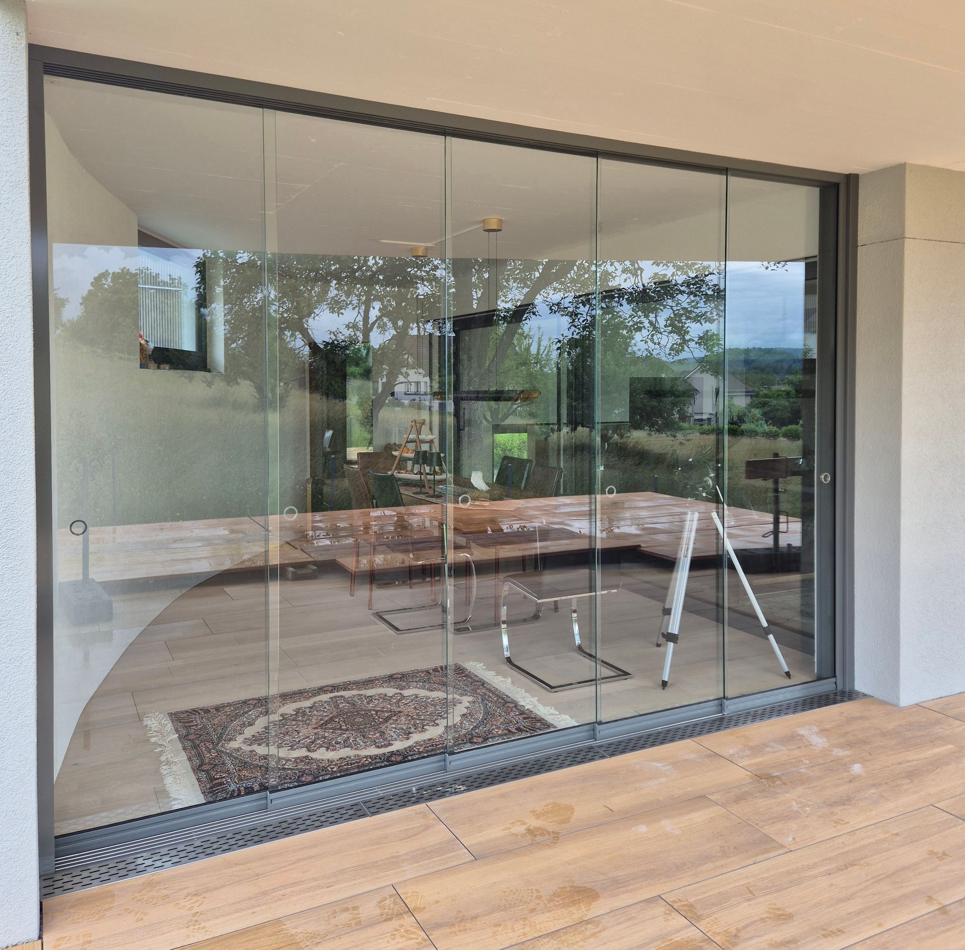 zwischen Innen- und Außenraum. Es verbindet Wohnkomfort mit klarer Sicht und offener Gestaltung – ideal für den Zugang zum Garten, Balkon oder Sitzplatz.